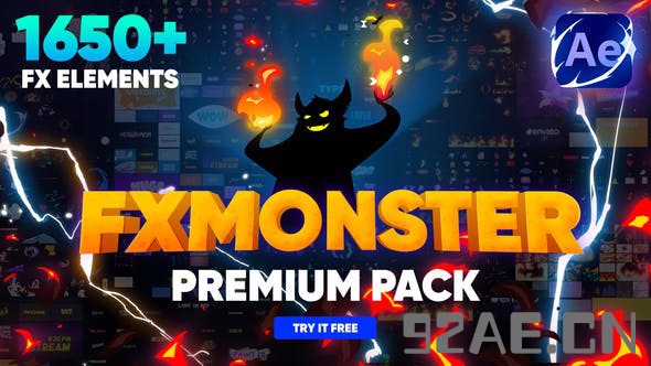 此脚本包含超过1650+个MG动画元素:图形转场,文字标题,燃烧火焰,烟雾,爆炸,能量电流闪电,流体动画,线条图形,石头火星,霓虹发光,剑气,卡通贴纸图形,手势动画,箭头,LOGO片头,背景,音效等各种图形动画。您可以随意组合元素并创建独特的组合。暂使用AEViewer脚本调用(FxMonster原装脚本可能需要等待),同样可视化管理预览直接点击即可使用,能够修改大小位置颜色等属性。