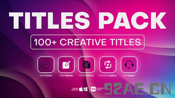 此模板包含 6个不同类别的 100 多个标题的捆绑包,让您以精美的效果满足您的客户,非常适应于动画设计师,在文本动画或标题项目的工作中!一个好的项目需要专业的动画