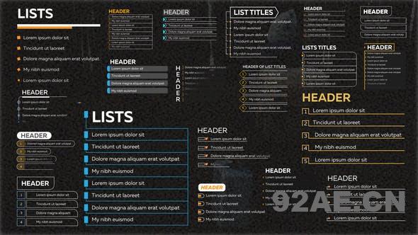 模板包含20个企业项目列表演示文字标题动画。非常灵活的项目,可以更改所有颜色,使元素变平或渐变。可用作现代企业演示、电影标题、明亮介绍、字幕条、视频卷轴标题、信息图表排版中的标题等!
