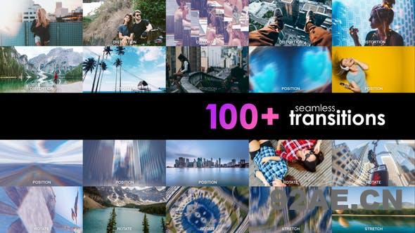 模板总共包含六大类超过100+种视频无缝过渡转场动画