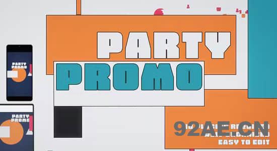 AE模板-派对聚会活动扁平化炫彩图形开场宣传动画 Party Promo