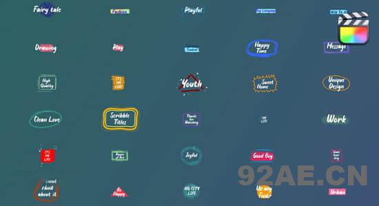 一套带有彩色卡通标题的动态文本动画。可用于社交媒体内容、介绍、字幕条等。能修改成中文标题和颜色。