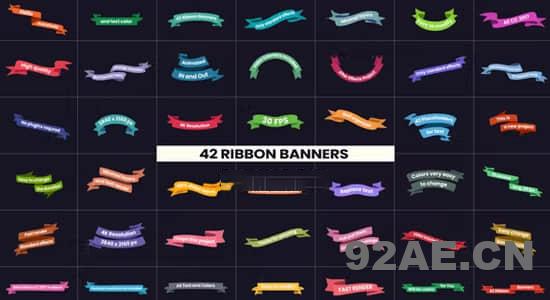AE模板-42个横幅条形丝带文字标题展示动画 Ribbon Banners