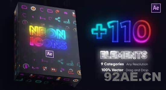 AE模板-110+个图标文字线条霓虹发光效果动画 Neon Icons Essential Pack