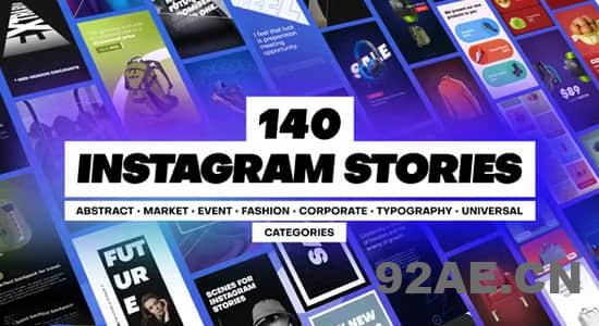 140个竖屏封面设计图文展示介绍动画,7 个不同的类别:抽象、市场、事件、时尚、企业、排版和通用。