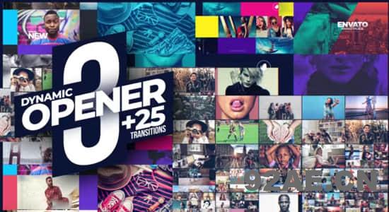 模板包含3种布局+25种网格过渡,35个图像占位符,可修改颜色。