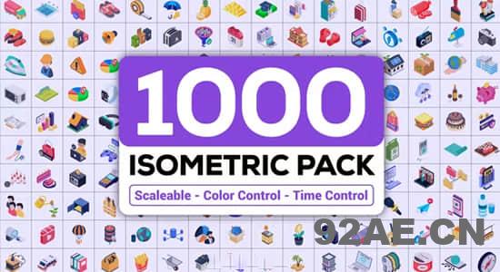 模板包含二十个类别,共1000个日常生活等距图标动画